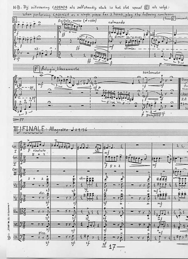2) Concertino 3 hoorns en strijkorkest (1994); overgang vrije cadens naar folkloristische finale