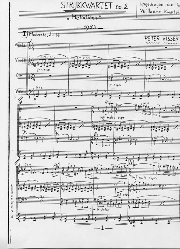 3)Inzet strijkkwartet no. 2 "Melodieën": lange melodische lijn boven rustige begeleiding