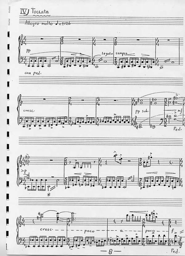 8) Pianomuziek Peter Visser: typerend toccata-achtig gedeelte uit de Vijf Nocturnes (1989)